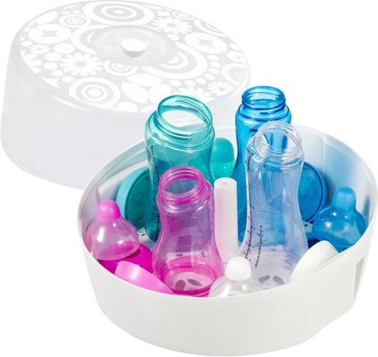 De Difrax flessen sterilisator is een handige oplossing voor het snel en hygiënisch reinigen van babyflessen, spenen, fopspenen en kolfonderdelen.